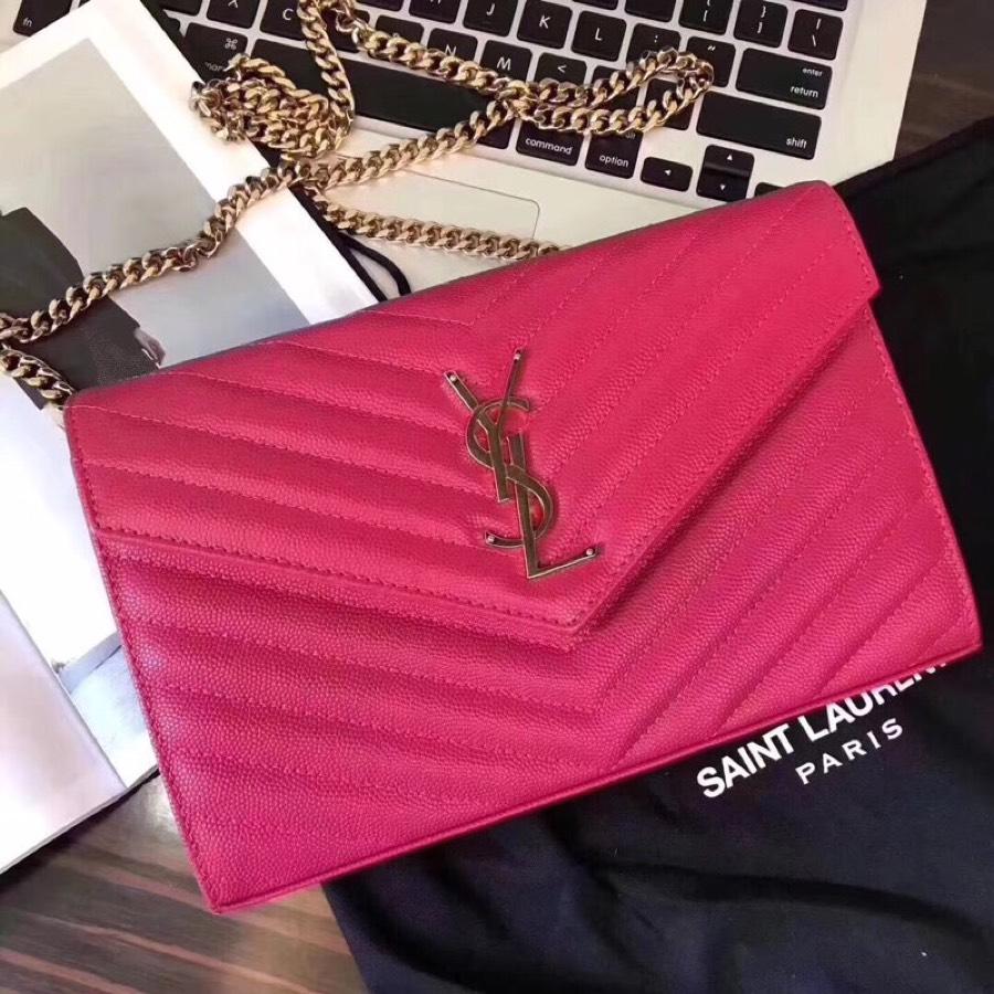 Replica Saint Laurent Monogram Chain Wallet In Grain De Poudre Embossed Leather Lipstick Fuchsia
