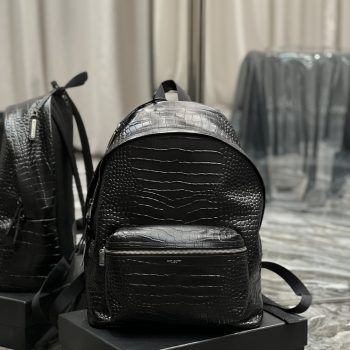 Saint Laurent City Backpack In Crocodile-Embossed Leather Black