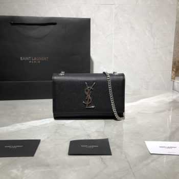 Original Copy Saint Laurent Classic Small Kate Chain Bag in Black Grain De Poudre Textured Leather Sliver Hardware