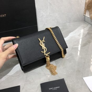Original Copy Saint Laurent Small Kate Chain Bag in Black with Tassel in Grain de Poudre Embossed Leather Gold Hardware