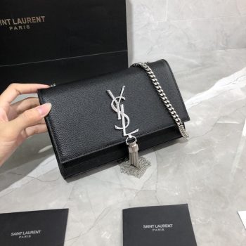 Original Copy Saint Laurent Kate Chain Wallet with Tassel in Smooth Leather with Sliver