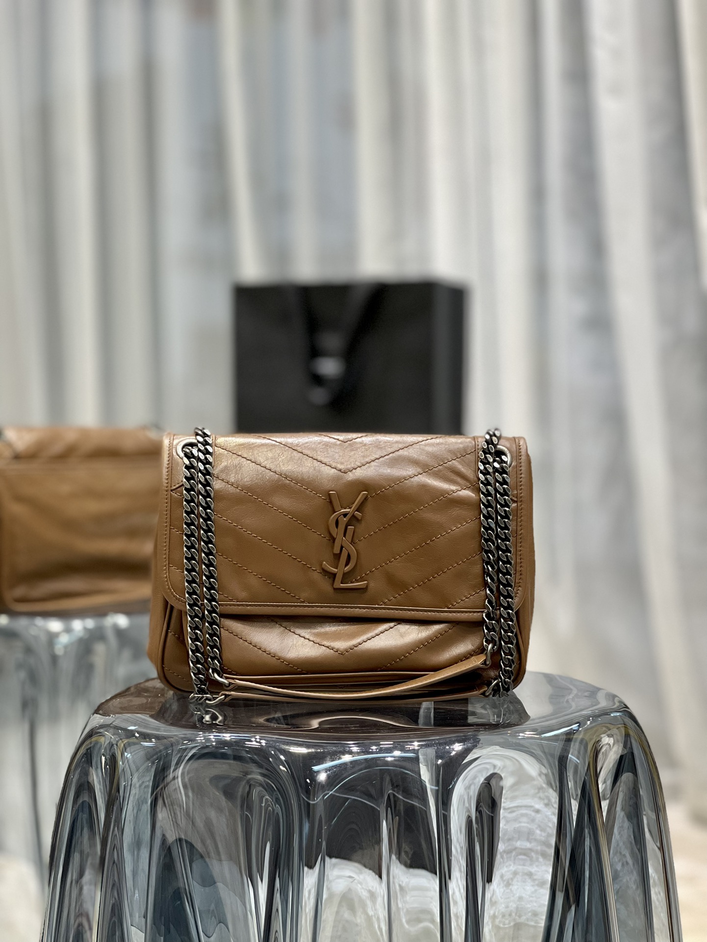 Replcai Saint Laurent NIKI Small Bag in Crinkled Vintage Leather Silver